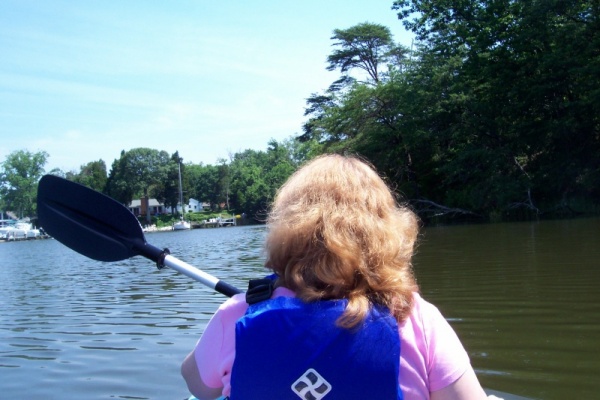 Today we intended to go to Chick and Ruth's, but ended back at Aromi D' Italia for breakfast. Both of us were still full from dinner and we knew we would end up ordering a full blown breakfast at Chick and Ruths. We got bagels and cream cheese. I asked for an onion bagel and got a bagel with a slice of onion. I was surprised, but after my first bite, delighted. We spent more time walking around the city dock area and then back to the hotel to pack up. We checked out and went to Quiet Waters Park and rented a tandem kayak for an hour and explored Harness Creek all the way to the marshy end.